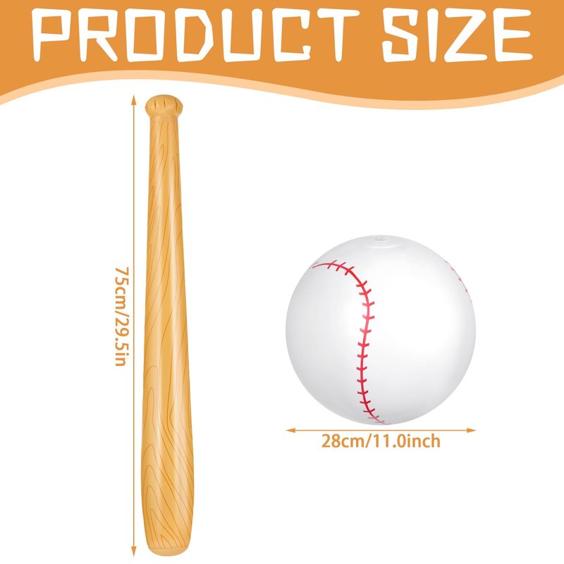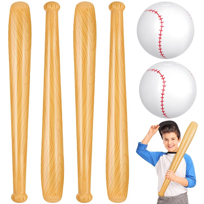 - Inflatable Baseball Ball and Bat Set: in the package, there are 2 x inflatable baseball and 4 x inflatable bats, allowing to play indoors and outdoors, suitable for baseball birthday party favors supplies
