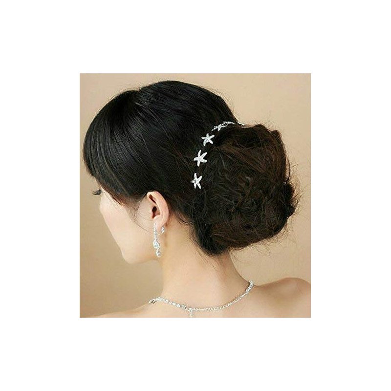Set of 6 Gold Silver Sea Star Rhinestone Crystal Hair Pins Starfish (Silver)