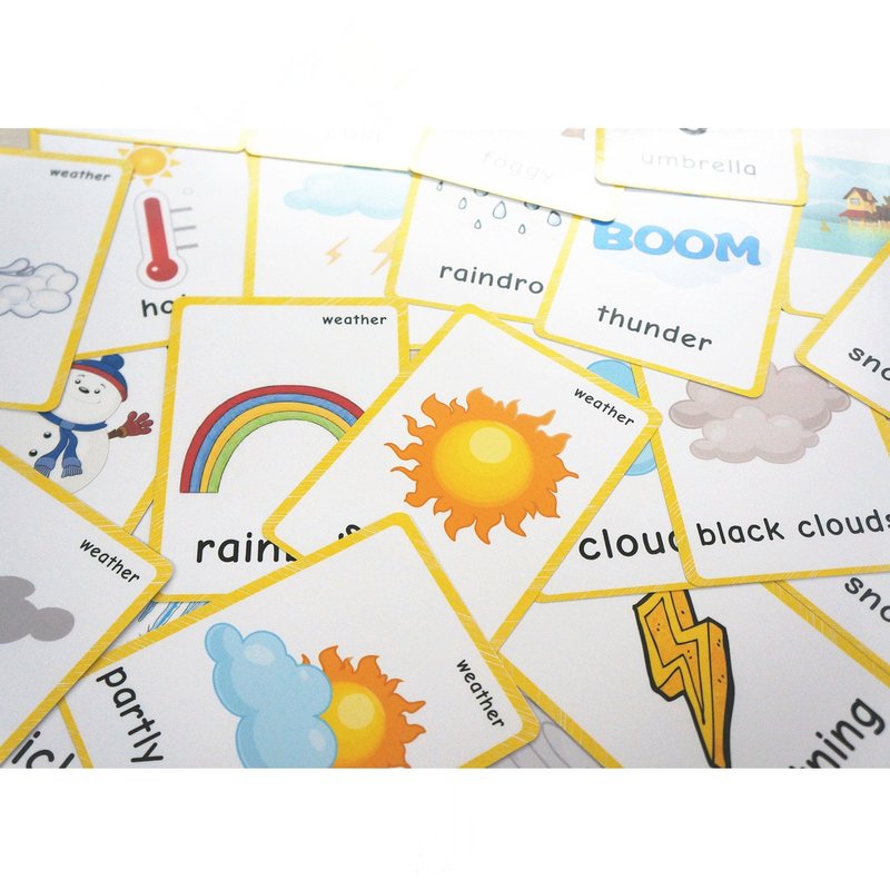 Model: 36 Pieces Clothing +22 Pieces Weather Educational Flash Cards Set.