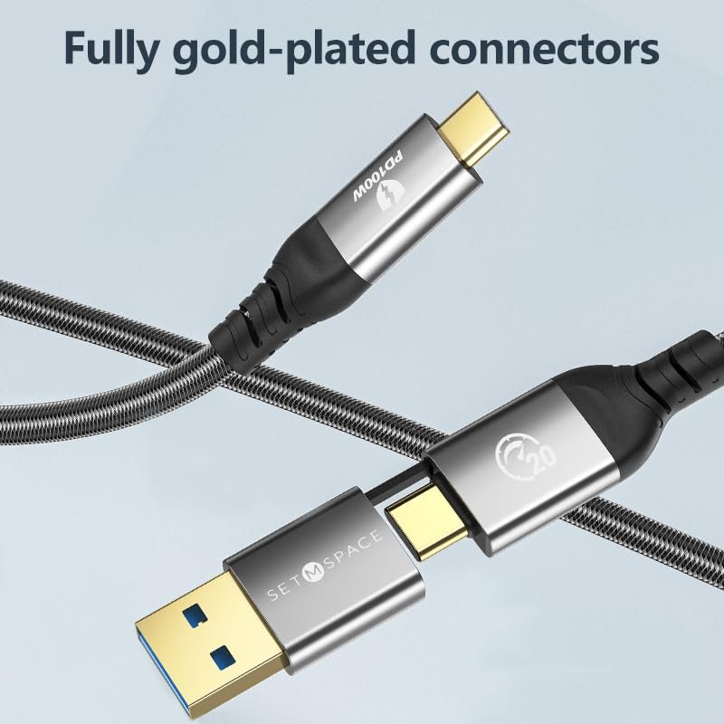 SETMSPACE USB C Cable for USB 3.2 Gen 2x2 [6.56ft], 20Gbps Transmission Speed, 100W Charging, Support 4K@60Hz Video Transmission, 2 in 1 USB A/C to USB-C Braided Graphene Charging Cable