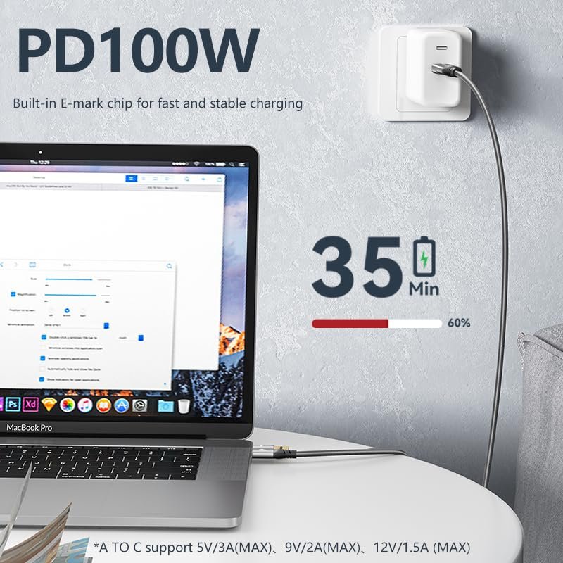 - 100W FAST CHARGING : This 3 cable up to 20V/5A 100W charging compatibility. Supports a maximum 100W charge , Fully compatible with FCP and PD protocol , Laptops and cell phones on the market with USB-C port charging capabilities can be charged .