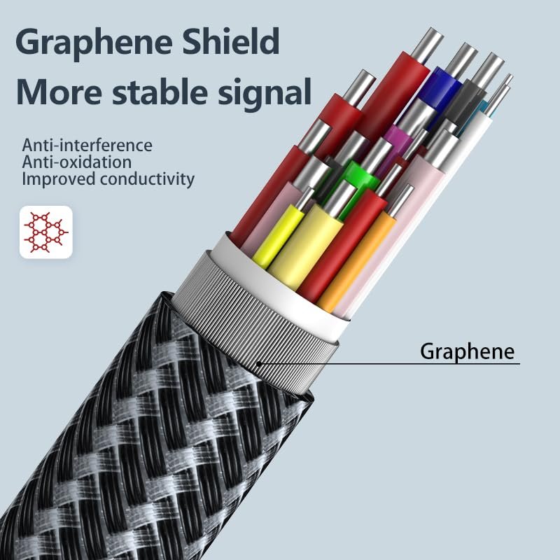 - HIGH QUALITY : Use environmentally friendly nylon material for cable reinforcement and thickened skin for more durability. The middle contains a graphene shielding layer to effectively shield interference. The interface is reinforced to make it more difficult to break, and the service life is twice as long as ordinary cables.