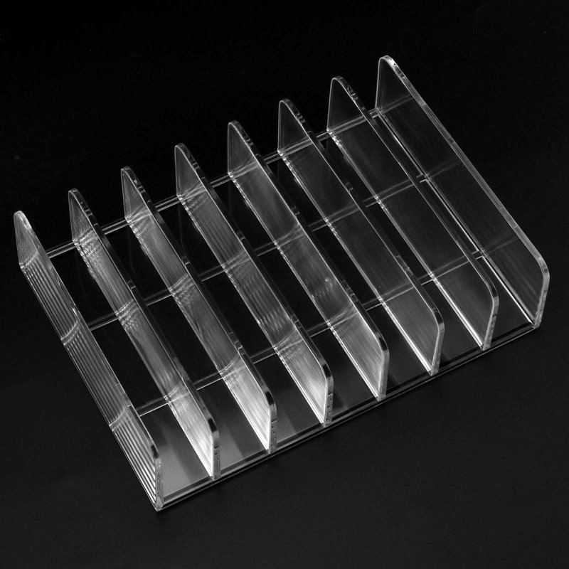 - 7 COMPARTMENTS DESIGN - Our acrylic makeup palette holder has 7 compartments, each compartment measures 0.87 inches, which can hold most of the different sizes of makeup, such as eyeshadow palette, grooming palette, blush, and other commonly used makeup products can be stored in it.