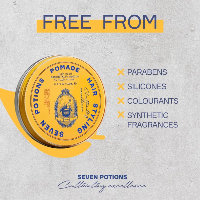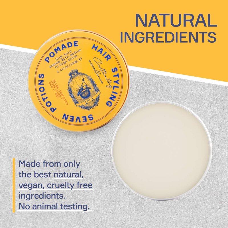 SEVEN POTIONS Hair Styling Pomade For Men 3.4 fl oz - High Shine - High Hold Hair Wax - Water Based - Natural, Vegan, Cruelty Free