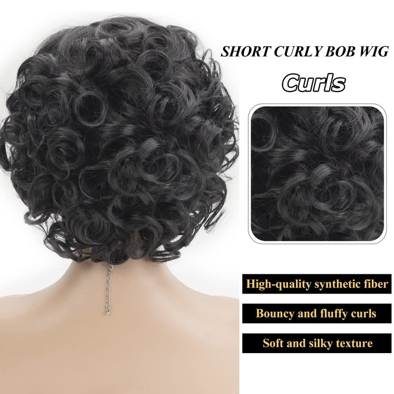 - đź’–Premium Quality Short Curly Synthetic Wig:This short black curly hair wig is made of high quality heat resistant synthetic fiber,which is soft and natural as your real hair.The curls are bouncy and lovely,matte and not fake,and can be trimmed and styled to suit your needs.