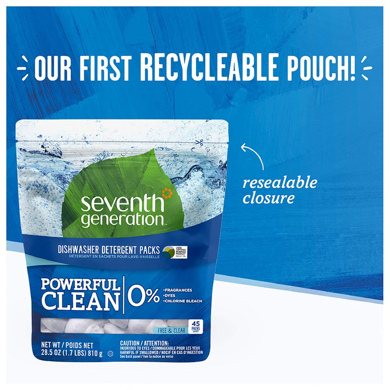Seventh Generation Dishwasher Detergent Packs, Free & Clear, 45 count
