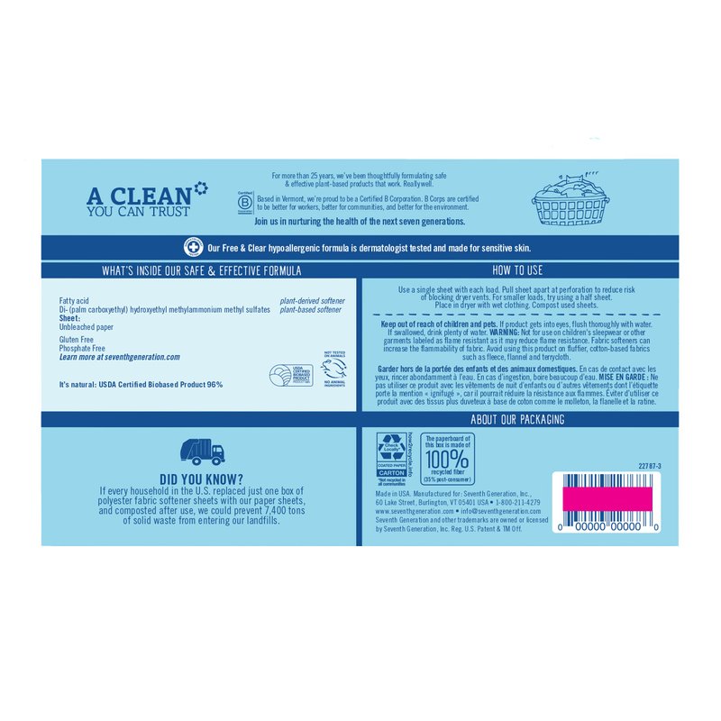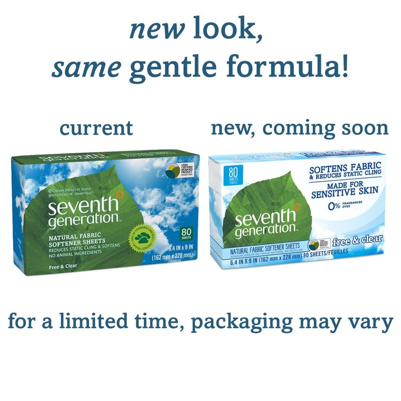 Seventh Generation Fabric Softener Sheets, Free and Clear, 80-Count (Pack of 2) Packaging May Vary