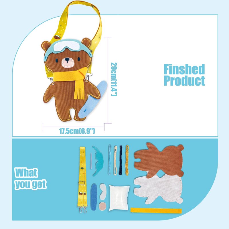 Sewing Kit for Beginner Kids Arts & Crafts Soft Toy My First Craft Set Includes Snowboarding Bear with Fun Shoulder Strap Instructions & Plush Felt Materials for Learn to Sew, Embroidery for 6 Years
