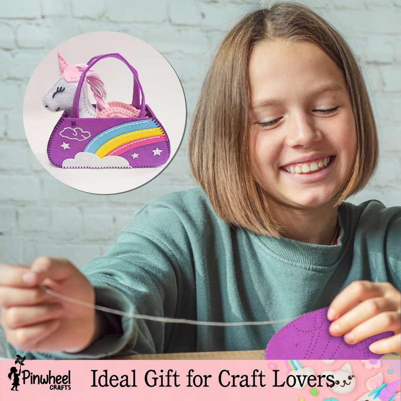 - CREATE YOUR OWN UNICORN & PET PURSE – The Pinwheel Crafts Unicorn Sewing Kit for Kids & Adults includes all the essentials to create a magical unicorn and rainbow-themed purse. This sewing kit for beginners includes pre-cut felt pieces, embroidery floss, and simple instructions to guide kids step by step. A wonderful DIY project that lets young crafters create their very own unicorn accessory while learning sewing basics.