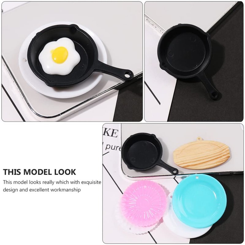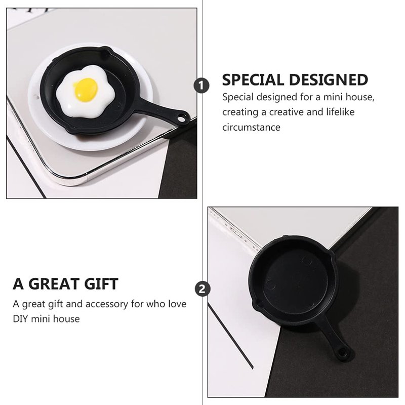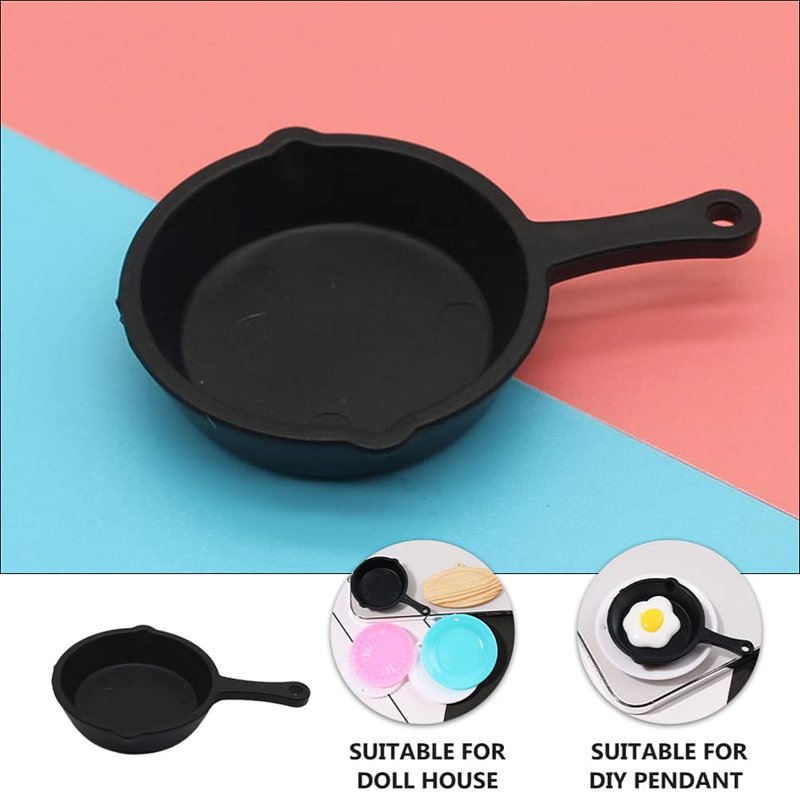 - REALISTIC LOOK: Mini dollhouse accessory frying pans come in classic black, combined with a realistic look, its easy to more glamour and fun to your dollhouse kitchen or dining table.