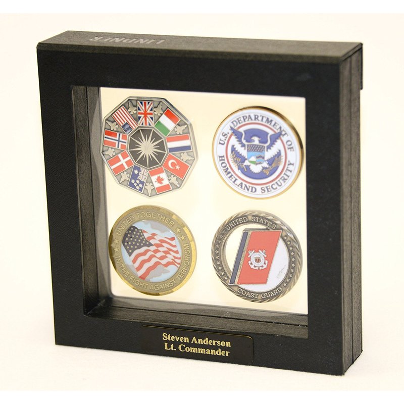 Prefect way to display that very special item. This box offers a very unique way of displaying your item. As both sides of the item can be seen. Ideal for Military Medals, Patches, Coins, Badges, etc etc. Great for displaying on a desk, shelf or any table top. This frame offers a completely new way of setting the stage for your collectible items. The Special feature, of these frames, are two transparent, flexible silicone membranes which surround your exhibition items softly and which create the impression that they levitate inside the frame. At the same time you have an un-restricted view of the back- and front side of your favorite pieces. There is no limitation in your fantasy as to what kind of items you would like to present in these frames. The material is very flexible and adapts completely to the surface of the objects and keeps them in their place; From coins and stamps to writing utensils, watches, knives, decorations, photos, jewelry and other favorite pieces - with this 3D frame you give your favorite objects a special frame. ...here is how it works: The frame can be opened completely. the collectible is placed on one of the two silicone membranes and the frame can be closed. The object will be held in place by the surrounding silicone membranes, keeping it in its position. A magnetic closure keeps the frame held together. If your coin is larger or you require to display more coins, please see our other 3D Frames as we have other various sizes. Display's coins perfectly that are 2.5" or less (coin not included)