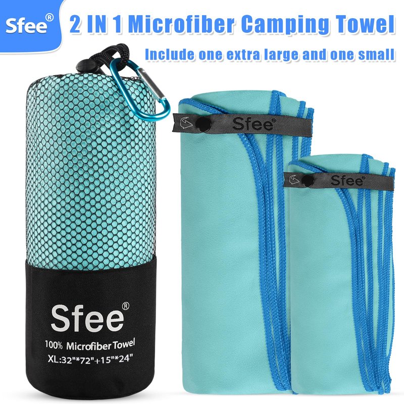 - Easy to Carry & Lightweight: Sfee quick dry beach towel made to save the space and to be more useful for traveling, professional travel, outdoor and beach side use. Our lightweight towel for travel are super space saving and easy to stuff it into your suitcase or backpack. Camping towel sets come with hanging loop for easy to carry. It is convenient hanging for quick dry anywhere without blew away.