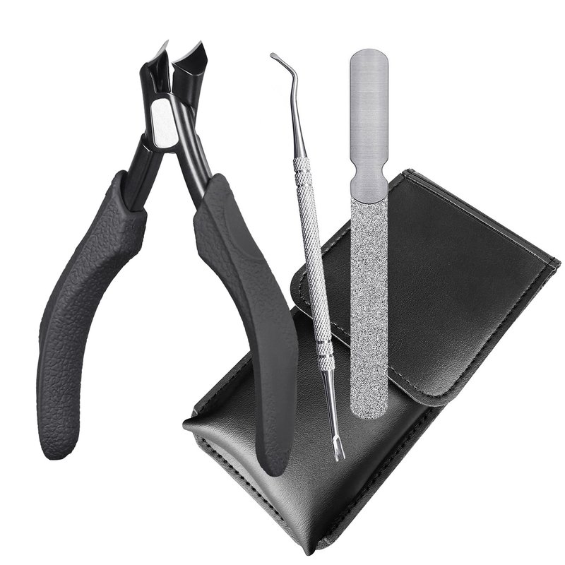 - 【Podiatrist Nail Clipper Set】: This 3-in-1 nail clipper set includes a toenail clipper, a long double-sided diamond grits file, and a double-ended dead skin fork pusher. The nail clippers are designed for ingrown and thick nails. Double-sided long nail file can better file nails to make nails smooth and flat. Double-sided dead skin fork pusher can remove the dead skin of the nails, and also can remove the dirt between the nails. Keep your hands and feet healthy and pain free;