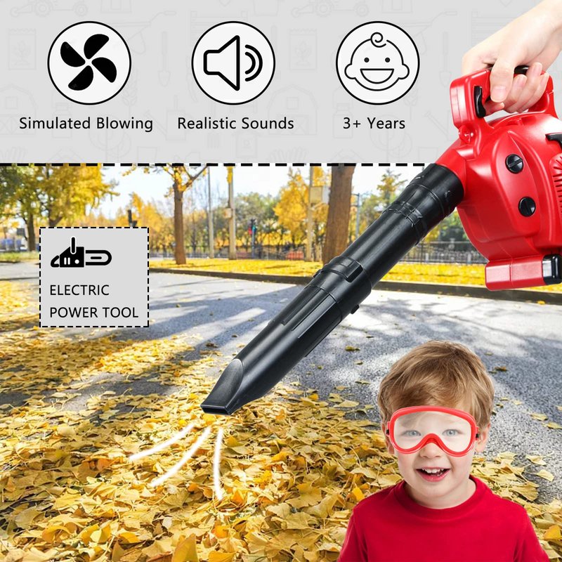 - Kid Power Tools: Just insert the battery and press the button, the kids leaf blower will make a realistic weeding sound and blow out real air like a real leaf blower. This is a good prop for pretend and role play.