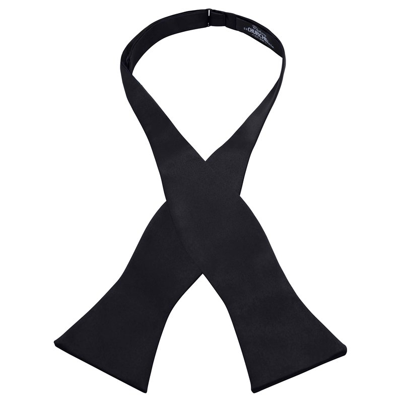 S.H. Churchill & Co. Men's Self-Tie Satin Bow Tie - Faux Silk for Wedding Tuxedo (Black)
