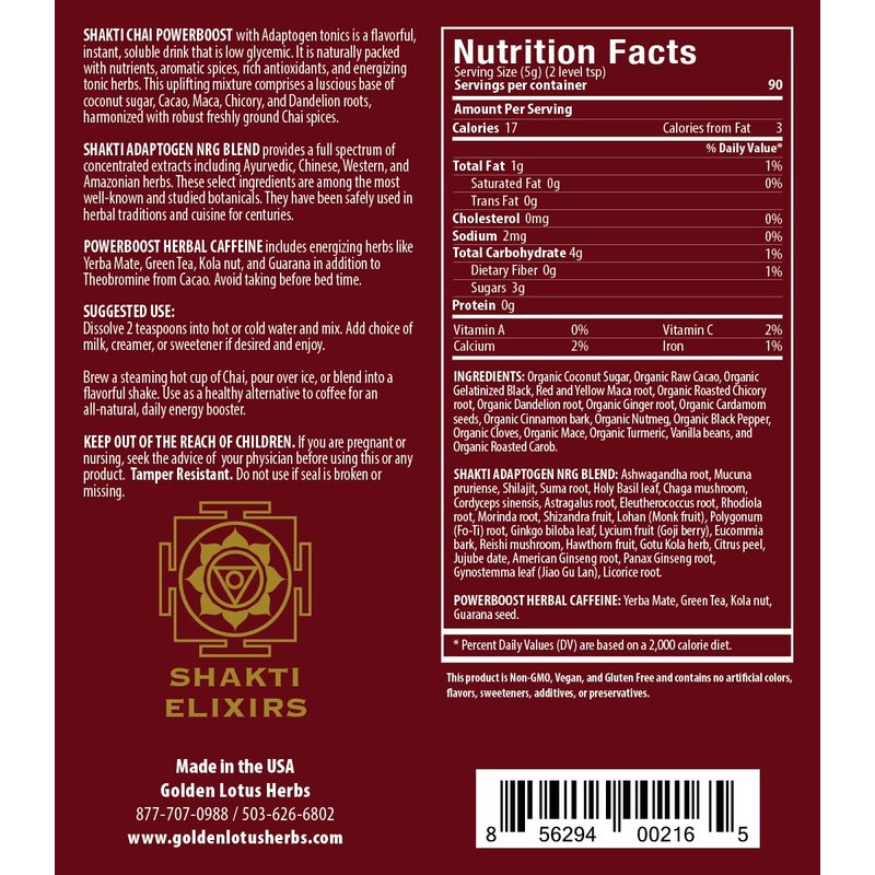 Shakti Chai Herbal Chai Tea From Golden Lotus Herbs 16oz
