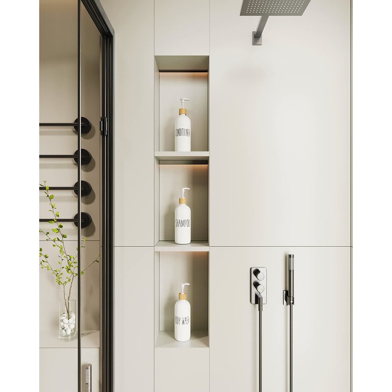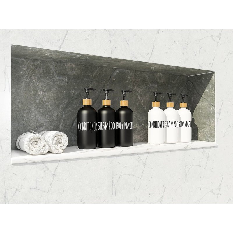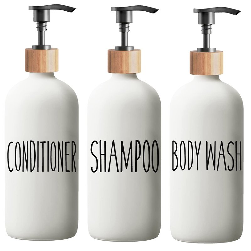 Shampoo and Conditioner Dispenser Set - Easy to Read Labels - Pump Bottle Dispenser for Shampoo, Conditioner, Body Wash - Glass Refillable Containers for Shower