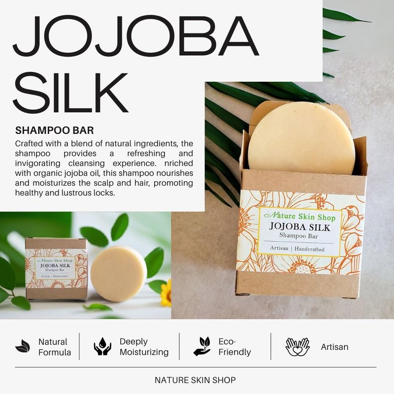 Treat your hair to the natural goodness of Nature Skin Shop's Jojoba Shampoo Bar and elevate your hair care routine to new heights, all while making a positive impact on the environment.To use it, just swipe it across your clean, wet hair. Focus on the length of the hair and ends. Rinse out and feel the soft, silky strands.