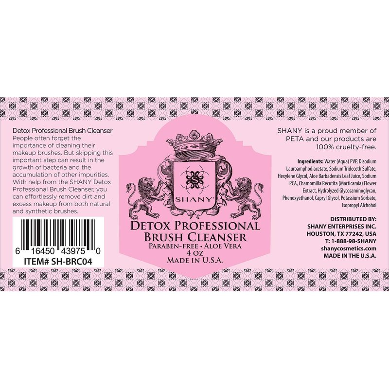 - SHANY DETOX BRUSH CLEANSER: SHANY Professional Makeup Brush Shampoo , Removes Makeup residue , dirt, dust and Impurities from cosmetics brushes ,Makeup Blending Sponges and makeup puffs . Our Brush Cleanser is gentle on brushes and will instantly dry.