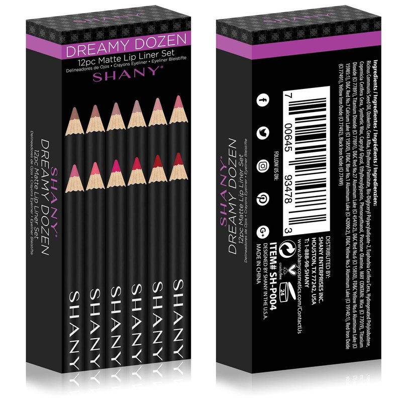 - SHANY DREAMY DOZEN MAKEUP PENCIL SET : 12 long-lasting lip pencils in classic nudes, reds, and pink shades that are suitable for all skin tones. Set comes with 5 nude shades, 4 pink shades, and 3 reds in vibrant colors and portable sizes.