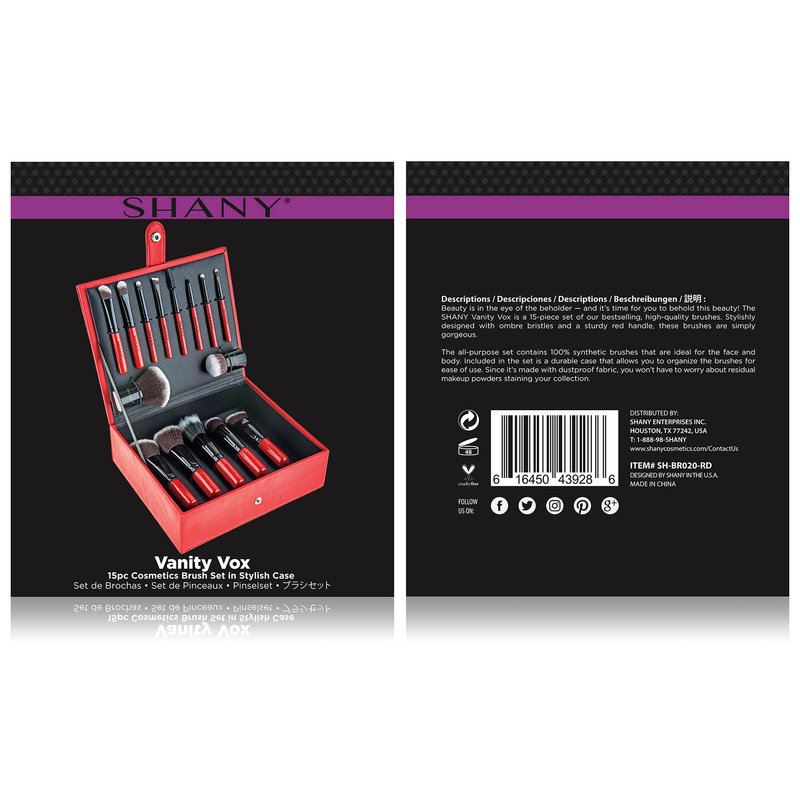 SHANY Makeup Brushes Vanity Vox- 15 Pc Premium Cosmetics Brush Set with Stylish Makeup Brush Storage Box and Brush Stand