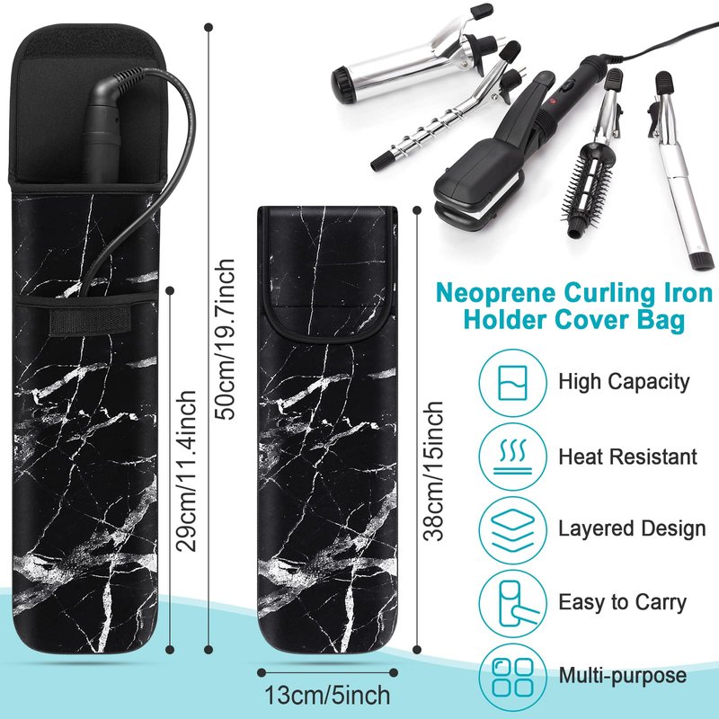 - Practical curling iron holder: the hair straightener hair tools organizer bag is made of quality neoprene material, features with nice heat resistant performance, sturdy and reliable for you to use for a long time; Double layers design, allows you to organize hot hair tools as much as possible