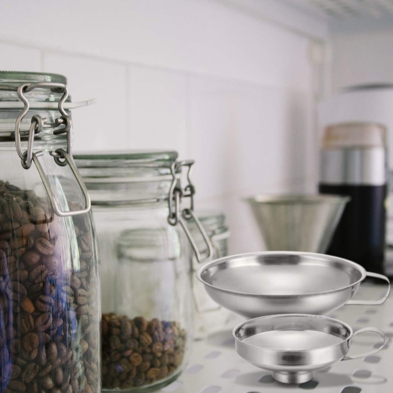 - Easy to use: the stainless steel canning funnels and fine mesh strainers are applied to transferring liquid and dry ingredients, convenient to operate with the handle on the funnel and can be hung on the wall to save space, keep your kitchen clean and organized