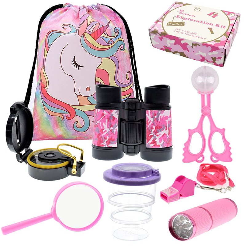 ShaqMars Kids Outdoor Adventure set Unicorn Gifts for Girls,Unicorn Backpack Binoculars Flashlight Compass Magnifying Glass Whistle Gift Box & More Kids Outdoor Toys, Pretend Play. Great Kidz Gift Set