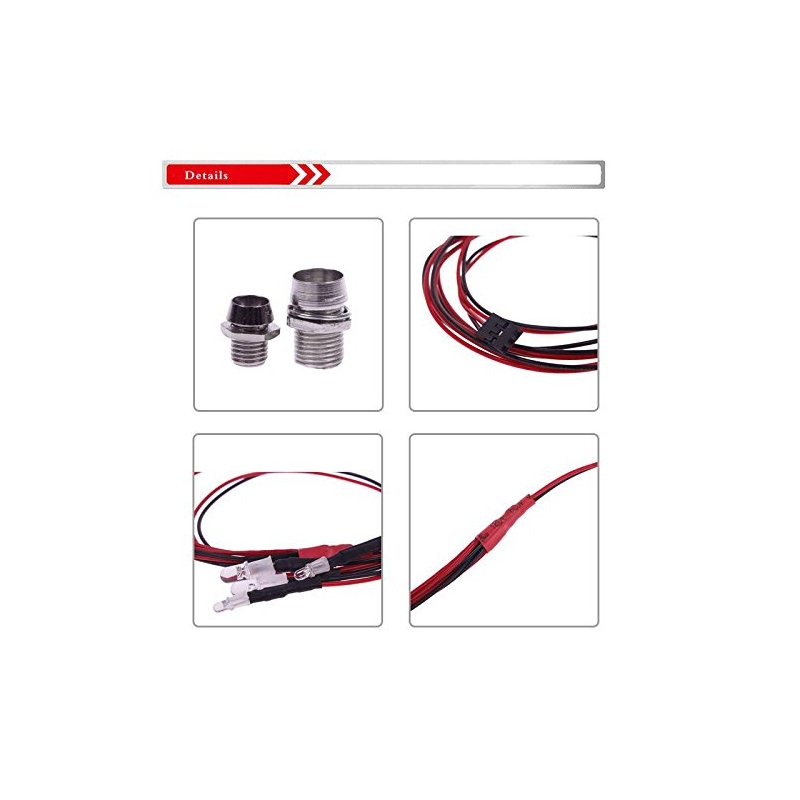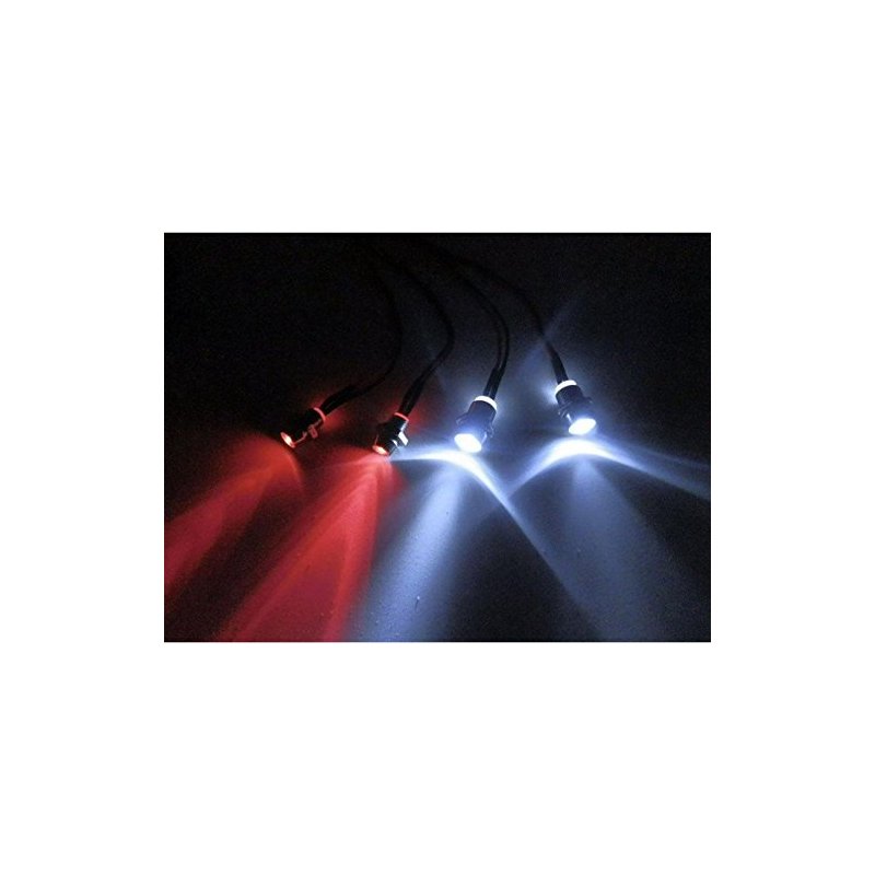 - Includes 6pcs LEDs: 2pcs White LEDs + 2pcs Red LEDs + 2 Flashing Colorful Leds