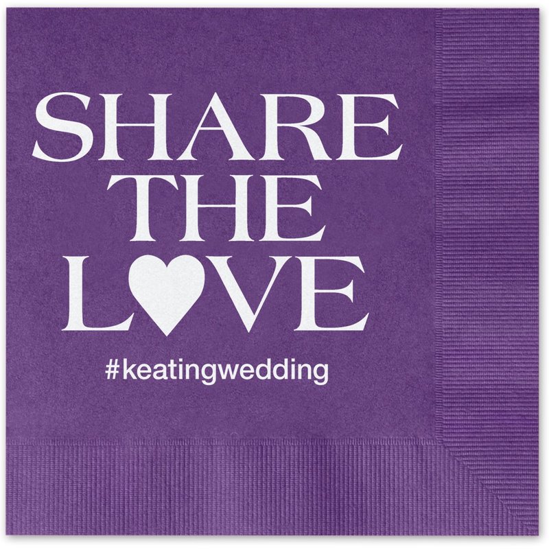 Share the Love Personalized Cocktail Napkins / 100 Violet Purple Paper Coined Napkins With Choice Of Foil/Folded 4 3/4" x 4 3/4" Beverage Napkins Made in The USA