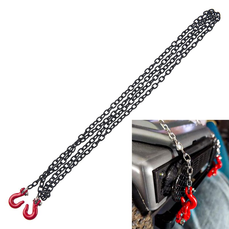 ShareGoo Mini Metal Trailer Chain with Tow Hook Decoration Accessories Compatible with Axial SCX10 HSP 94180 RC4WD D90 Traxxas TRX4 CC01 1/10 RC Crawle (Black)