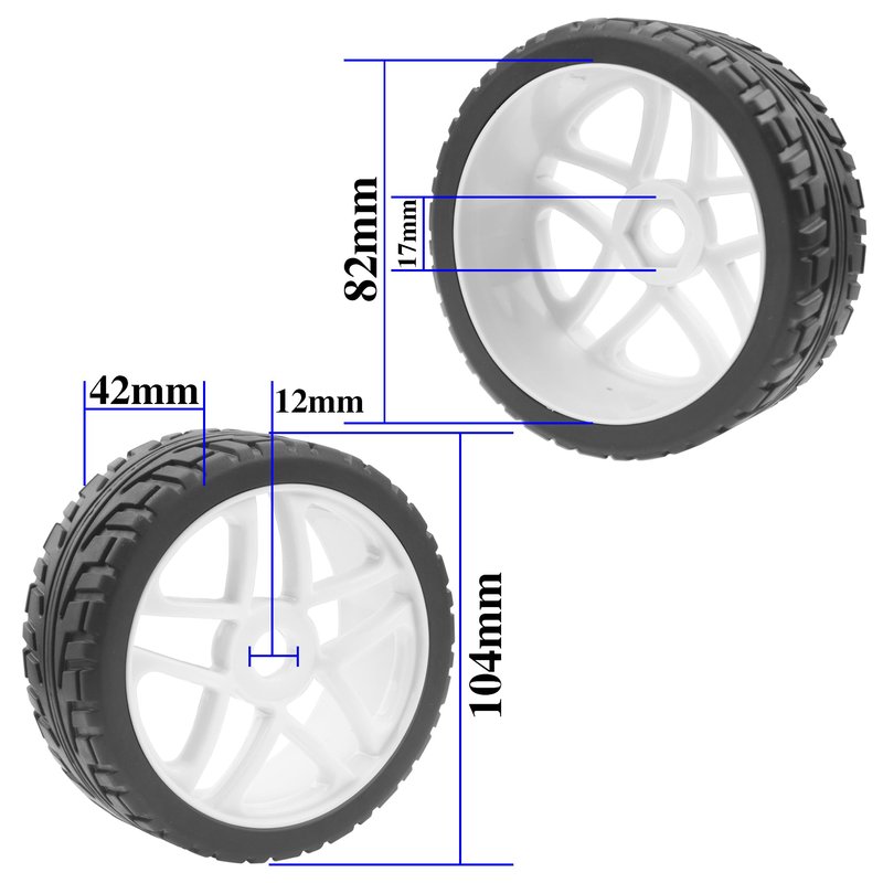 - Tire outside diameter: 104mm/4.09" ,Rim Inner diameter: 82mm/3.22" ;Width:42mm/1.65" ;Rim Color:Black/White/Green(Optional)