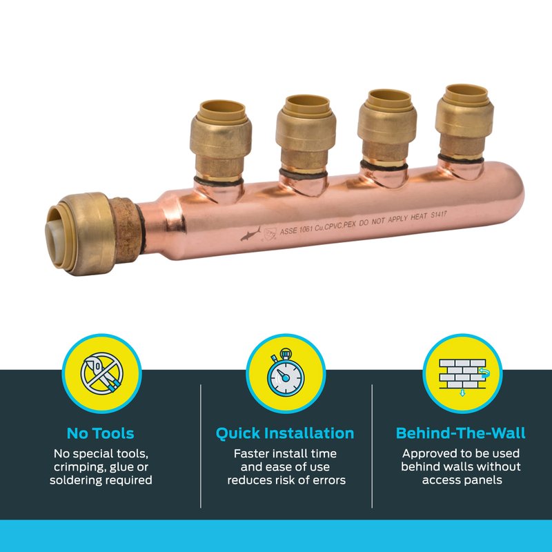 - SHARKBITE MULTI-PORT TEE: Multi-port tee with outlets is designed to supply multiple water lines