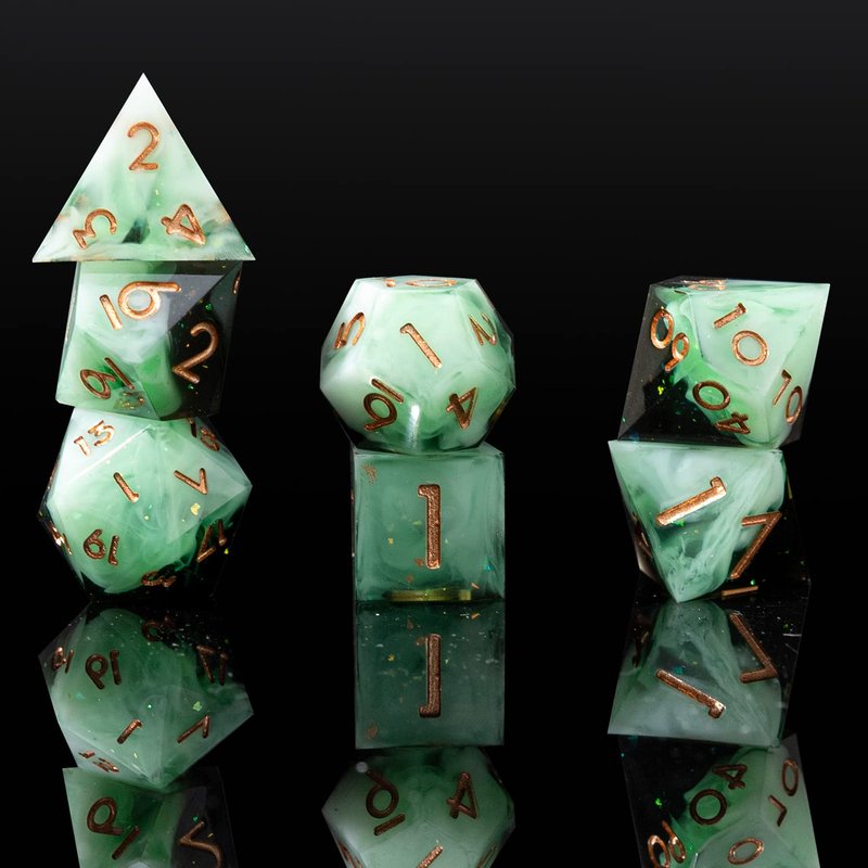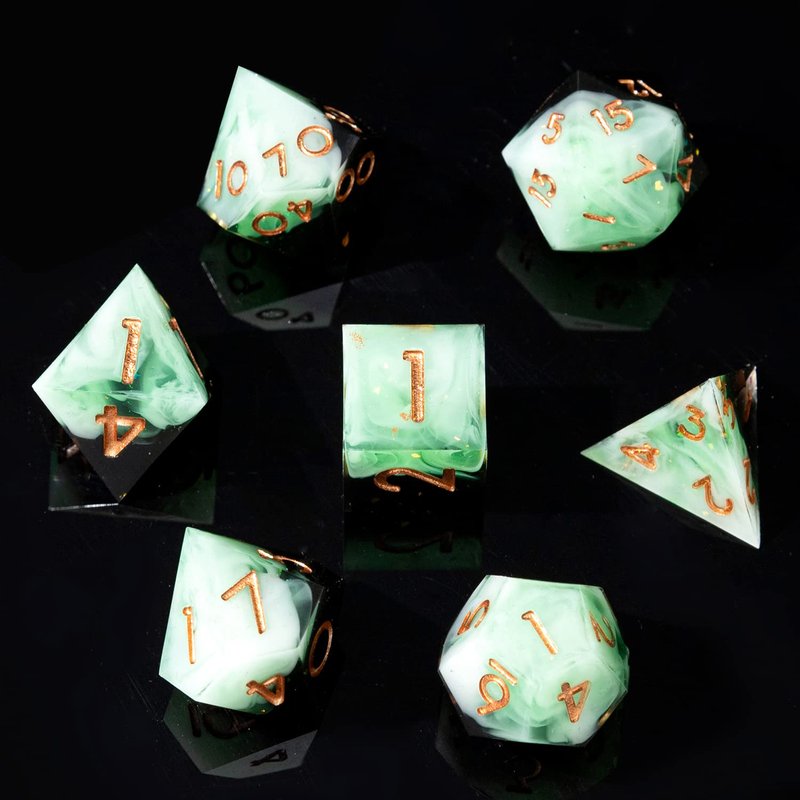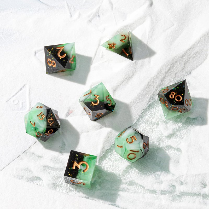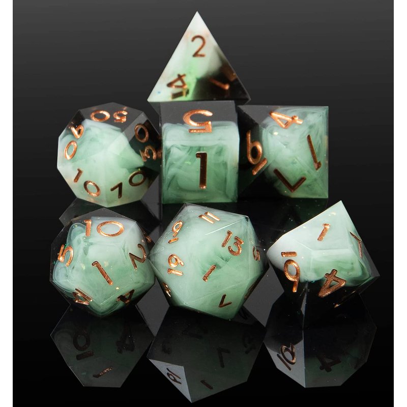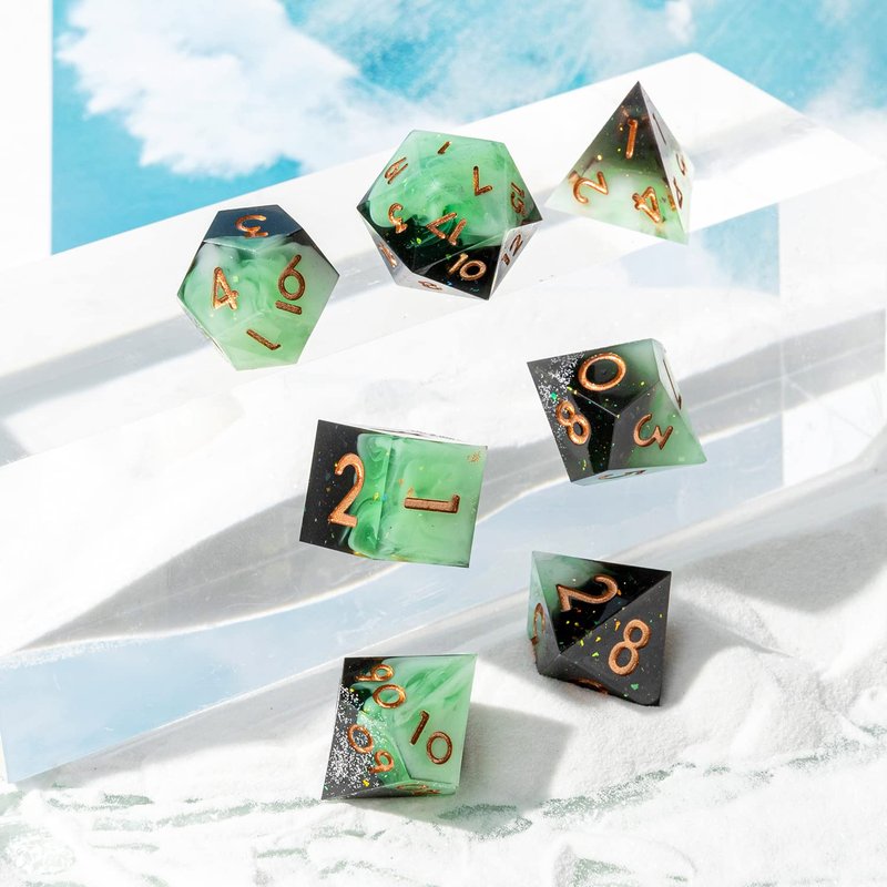 Sharp Edge DND Dice Set Handmade 7 Accessories Dice for Dungeons and Dragons TTRPG Games, Multi-Sided RPG Polyhedral Resin Sharp Edge Dice Roleplaying Games Shadowrun Pathfinder MTG(Gradient Green)