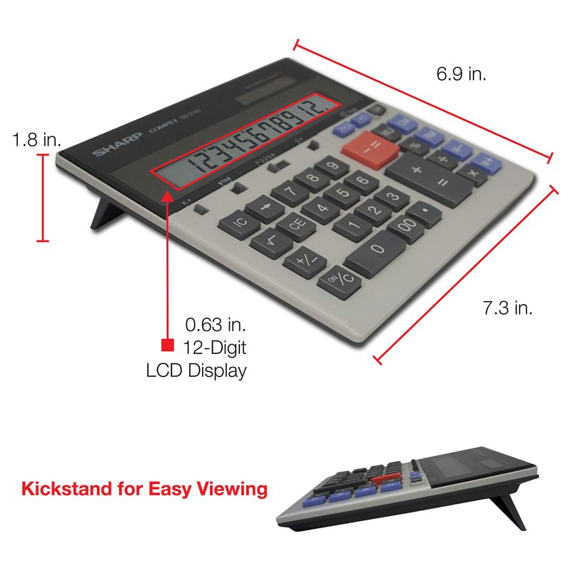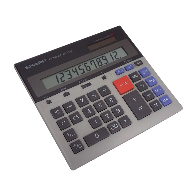 Sharp QS-2130 12-Digit Commercial Desktop Calculator with Kickstand, Arithmetic Logic, Battery and Solar Hybrid Powered LCD Display, Great For Home and Office Use,Gray and Black Small