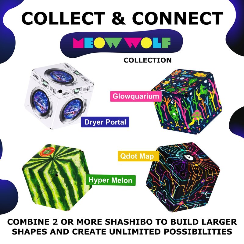 SHASHIBO Meow Wolf- Shape Shifting Box - Award-Winning, Patented Magnetic Puzzle Cube w/ 36 Rare Earth Magnets - Fidget Transforms Into Over 70 Shapes (Glowquarium)