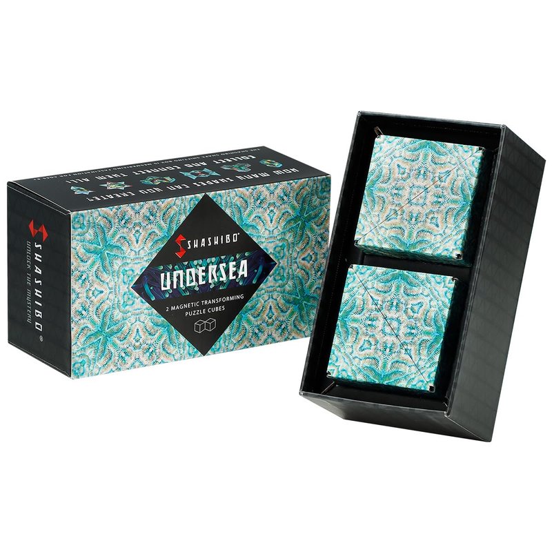 SHASHIBO Shape Shifting Box - Award-Winning, Patented Fidget Cube w/ 36 Rare Earth Magnets - Transforms Into Over 70 Shapes, Gift Box, Download Fun in Motion Toys Mobile App (Undersea, 2 Pack)