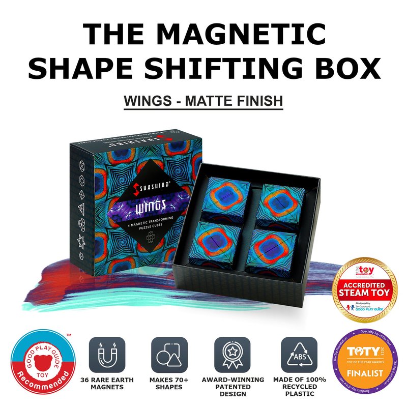 - Unlike other puzzle box toys that turn out disappointing & dull, the patented, award-winning shashibo sensory box features 36 rare earth magnets for an innovative design that transforms into over 70 shapes. Fits comfortably in the hand for hours of mind-challenging fun, stimulate the senses with unlimited creative possibility! Can you master the shape-shifting box?