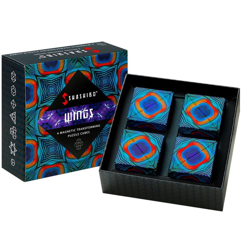 SHASHIBO Shape Shifting Box - Award-Winning, Patented Fidget Cube w/ 36 Rare Earth Magnets - Transforms Into Over 70 Shapes, Gift Box, Download Fun in Motion Toys Mobile App (Wings, 4 Pack)