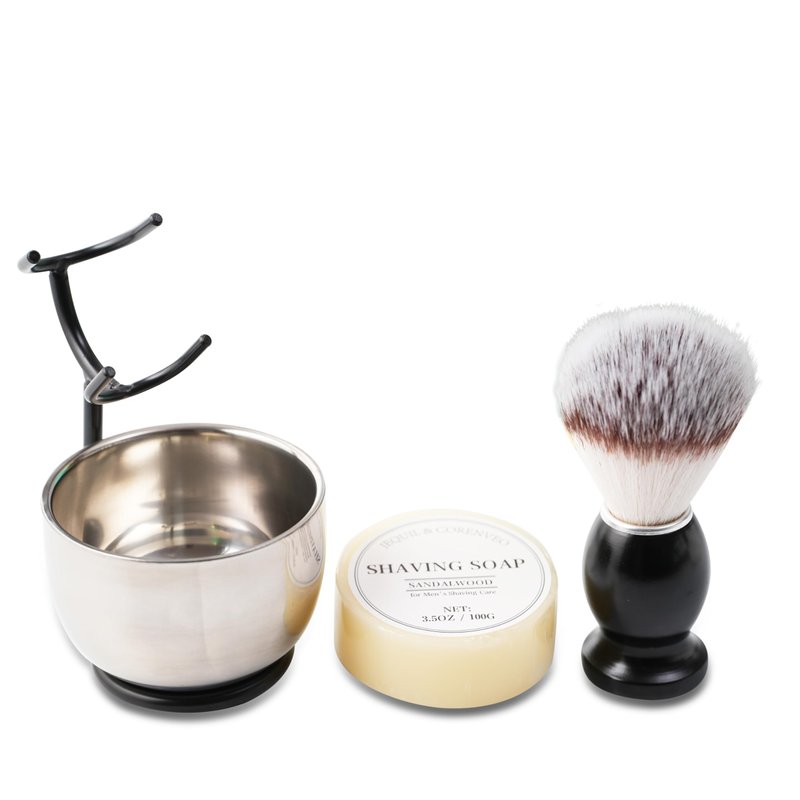- Ideal Shaving Set - Every set has a brush, sandalwood scented shaving soap, stainless steel bowl and stand. This set is ideal for beginners to get started or someone who wants to buy a nice gift.