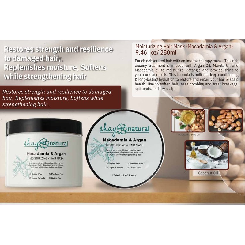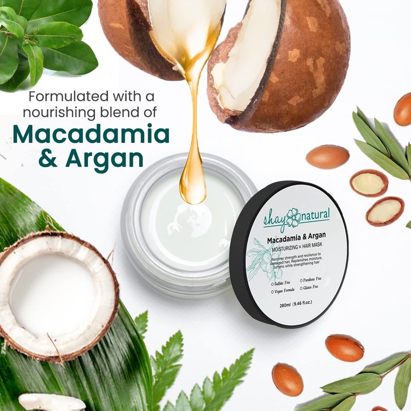 Shay Natural Macadamia & Argan Oil Hair Mask | Deep Conditioner, Hydrates & Moisturizes | For Color Treated, Dry & Damaged Hair | Easily Comb Through Hair| Paraben & Sulfate Free