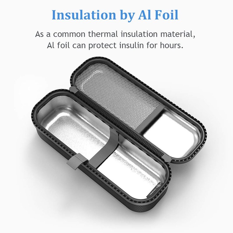 - The inside wall is added with Al foil that has excellent thermal insulation effect. It can effectively extend the duration of protection for insulin.