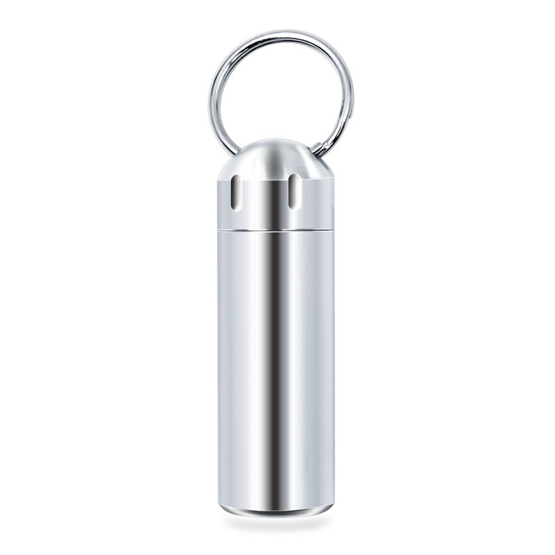 SHD Pill Box Keychain Waterproof Single Chamber Stainless Steel Pill Organizer for Outdoor Travel Camping