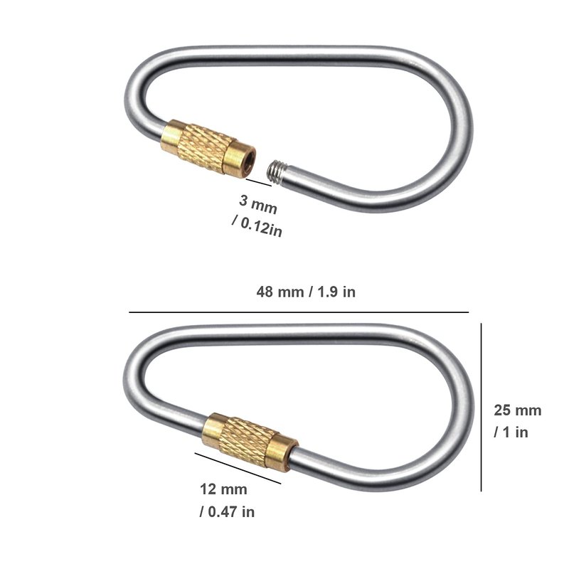 - Size and Weight-This small locking carabiners' size is 48mm*25mm/1.9in*1in, the weight is 5g/0.17 ounce, which is lightweight enough for comfortable use.