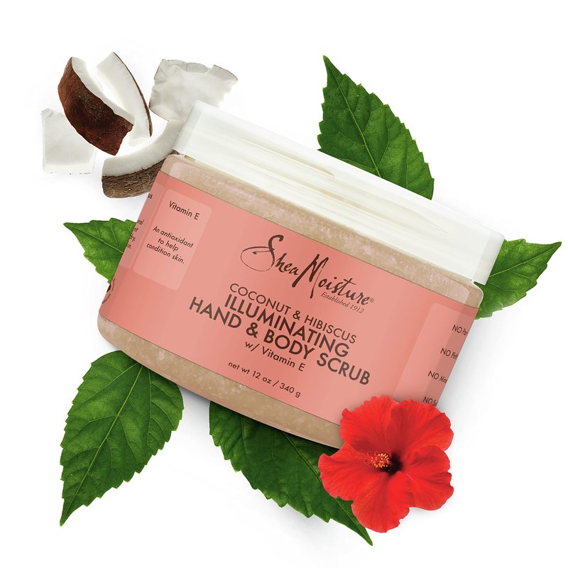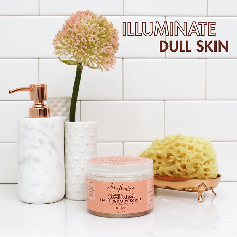 - ILLUMINATE & EXFOLIATE: SheaMoisture Coconut and Hibiscus Illuminating Hand and Body Scrub is an exfoliating body scrub infused with natural ingredients that will have you looking forward to softer and smoother skin!