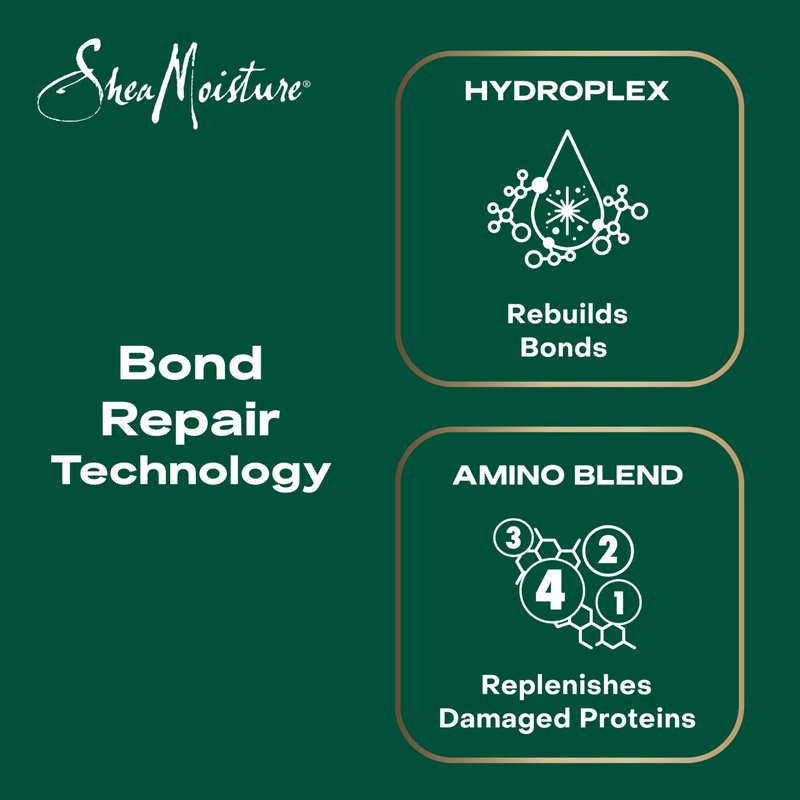 - Our four-step Bond Repair System infused with SheaMoisture HydroPlex Infusion, achieves 84% less breakage* and 6X stronger hair.* *vs non-conditioning shampoo *Repeated Grooming Technical Study #23-019; Conducted April 2023