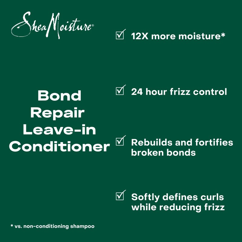 - SheaMoisture Bond Repair Leave-In Conditioner hydrates hair to softly define and smooth curls and coils while infusing 12x more moisture. vs non-conditioning shampoo