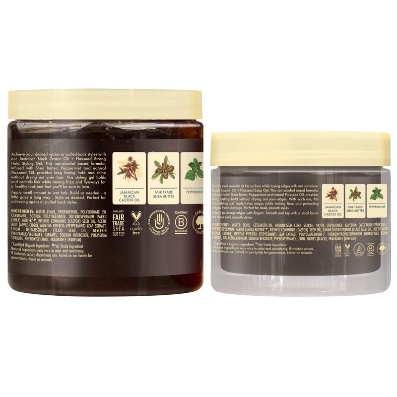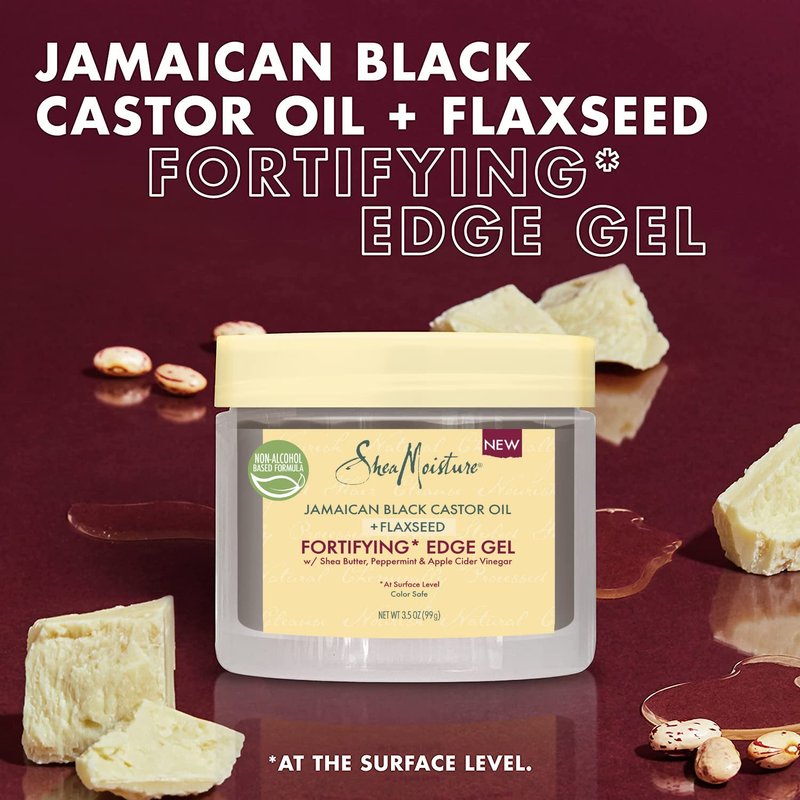 - EDGE CONTROL FOR FRIZZ: SheaMoisture’s Jamaican Black Castor Oil + Flaxseed edge fixer is a paraben-free edge hair gel for thick and curly hair that controls baby hairs.