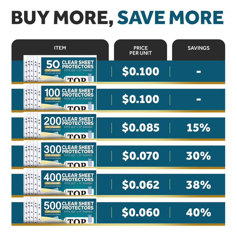 - A Simple Promise - Here at Supplies Sense, we know that thoughtful, well-crafted supplies can make all the difference at home or work. If for any reason you aren’t happy with your Sheet Protectors, don’t hesitate to reach out directly to us so we can make it right.
