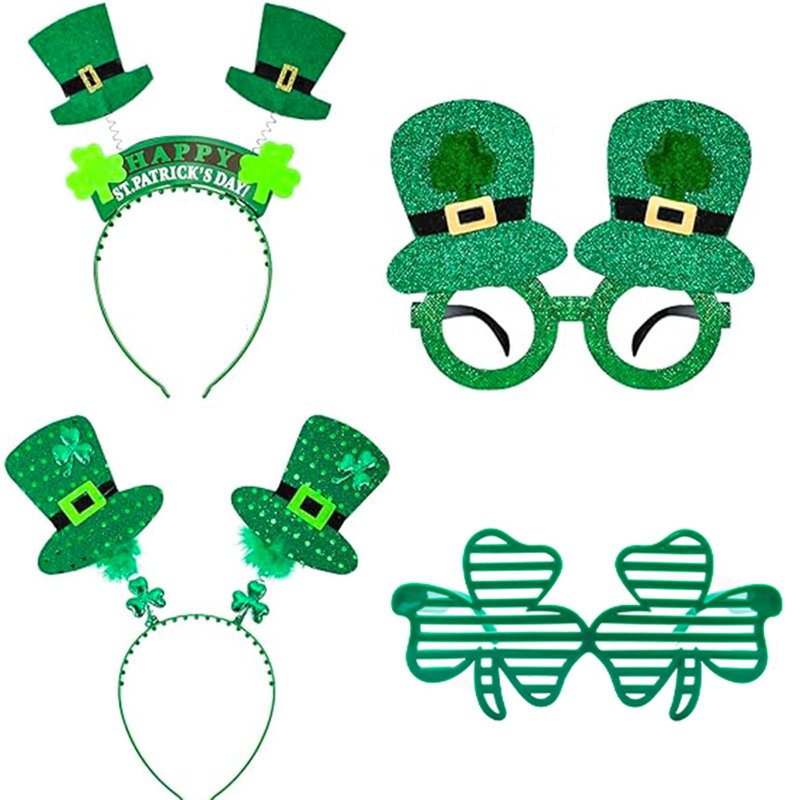 Features & Benefits: Reusable Material: All Green Irish headbands and glasses made it through like a champ and You can wear another year. Add a festive feel to the home by wearing them around. Ideal gift: These Green Irish headbands and glasses are great for anyone that wants to spread St Patrick's Day cheer! material: plastic Quantity: 4 pieces Package includes: 2 x St Patrick's Day Headbands 2 x St Patrick's Day Glasses